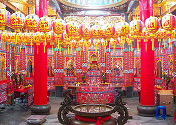 一般先拜中間的神像,再拜東邊的,然後再拜西邊的,因為道教講,東方是屬青龍,西方是屬白虎,東方主生,那麼先給青龍方神仙磕頭。
